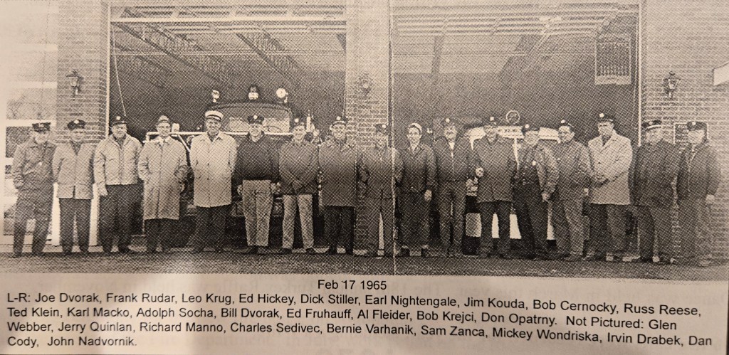 The first meeting of the Fox River Grove Fire Department was held on December 17th, 1923 at Kotaska’s Hall. Early meetings were held in the garages of August Prokop and Joseph Pokorny Jr. The first Fire Chief was Marshall Cihlar. In June of 1925 the firefighters began to meet at the Village Hall. The first reported fire was recorded on October 27th, 1925. The Fire Chief at that time was Joseph Pokorny Jr. The Annual Fund Raiser Dance started in February of 1935 and continued every February until 1969.